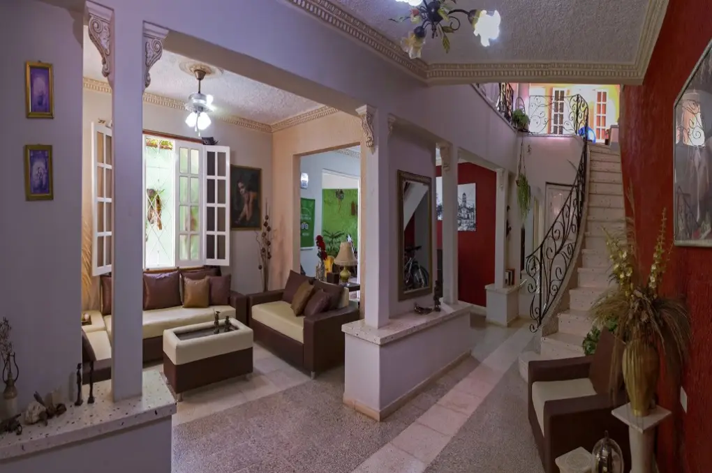 Casa Osmary Alberto , casa hostal con un total de 10 habitaciones todas con vistas interiores dirigidas al patio principal de la casa , area destinada para la recreaccion y relajacion de nuestros clientes.Ademas del patio como zona principal de disfrute tenemos proxima las areas bar y restaurant habilitados para ofrecer servicios completos de desayunos , almuerzos y cenas.La casa tiene 3 niveles , el primer nivel tiene la zona de recepcion , el patio , el bar , el restaurant y las 4 habitaciones princiales , en el segundo nivel estan las restantes 6 habitaciones ,luego tenemos el ultimo nivel que lo conforma una terraza con vistas a la ciudad, ademas un pequeño gym que inlcuimos en nuestros servicios , ademas del servicio de WIFI , asesoramiento para distintas actividades turisticas.Como extras ofrecemos, masages de cuerpo completo , servicio de lavanderia , servico de taxi por toda Cuba y la zona trinitaria asi como excursiones y city tours .Entre las excursiones tenemos nuestra famosa oferta UN dia de campo en Finca La Lima , alli le enseñaos a los clientes distintas actividades con los animales de granja al estilo cubano priorizando siempre el cuidado de la naturaleza y los animales. Casa Osmary Alberto es siempre su mejor opcion para un dsifrute sano en familia o amigos .