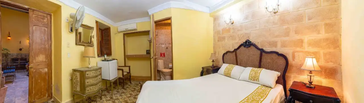 El Hostal Casa Havana (3 habitaciones) se encuentra a pocos minutos a pie de los lugares de interés. Disfrute del estilo cubano en un ambiente elegante en esta casa colonial renovada con cariño en compañía de una familia cubano-alemana, que estará encantada de apoyarle. La información sobre las otras 2 habitaciones, la encontrará a la izquierda en «Más información». Usted reserva una habitación doble (sin desayuno); el desayuno se puede pedir con un precio suplementario después de la reserva.